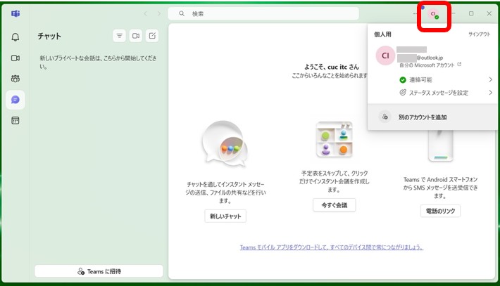 ※ Teamsがインストール済みの場合 -> Teamsを起動し 手順3. へ