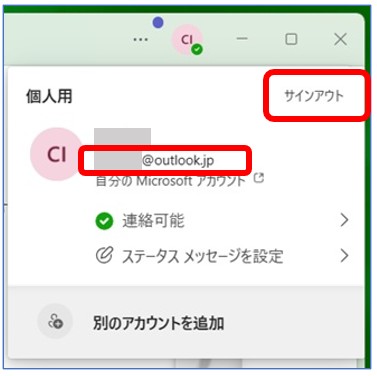 ・個人のメールアドレスの場合「サインアウト」をクリック