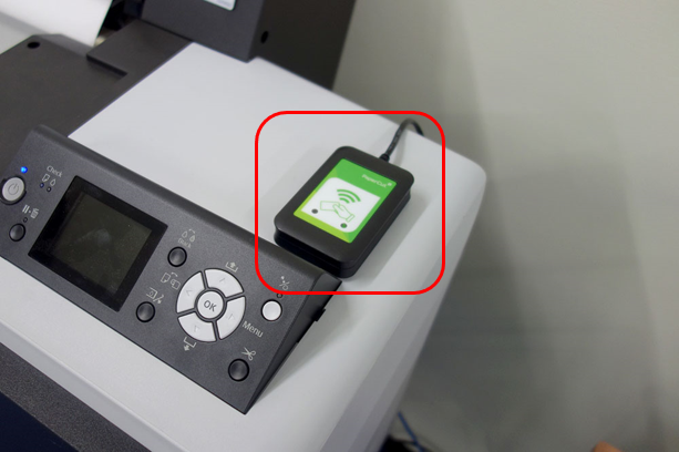 ⑩「 学生証 」を「 大判プリンターの所にある ICカードリーダー」に